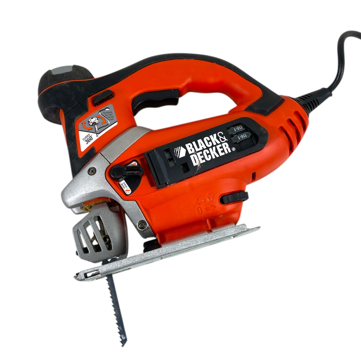 Reliable variable speed Black & Decker jigsaw. Comes in hardshell carrying case and with three blades to get you started.